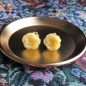 淡いバターイエローの薔薇、可愛らしいイヤリングです。