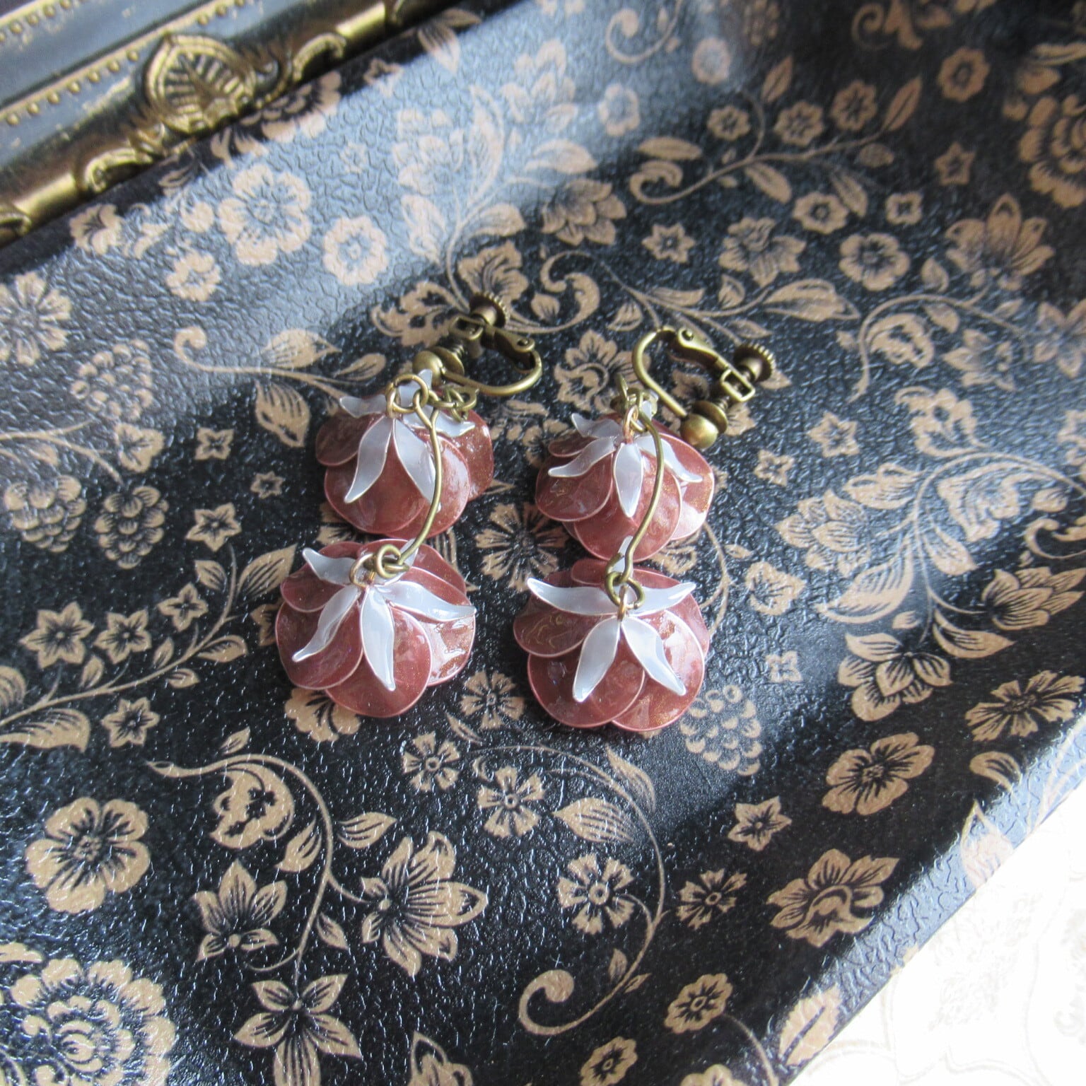 赤茶色(煉瓦色)の薔薇をモチーフにしたイヤリングです。